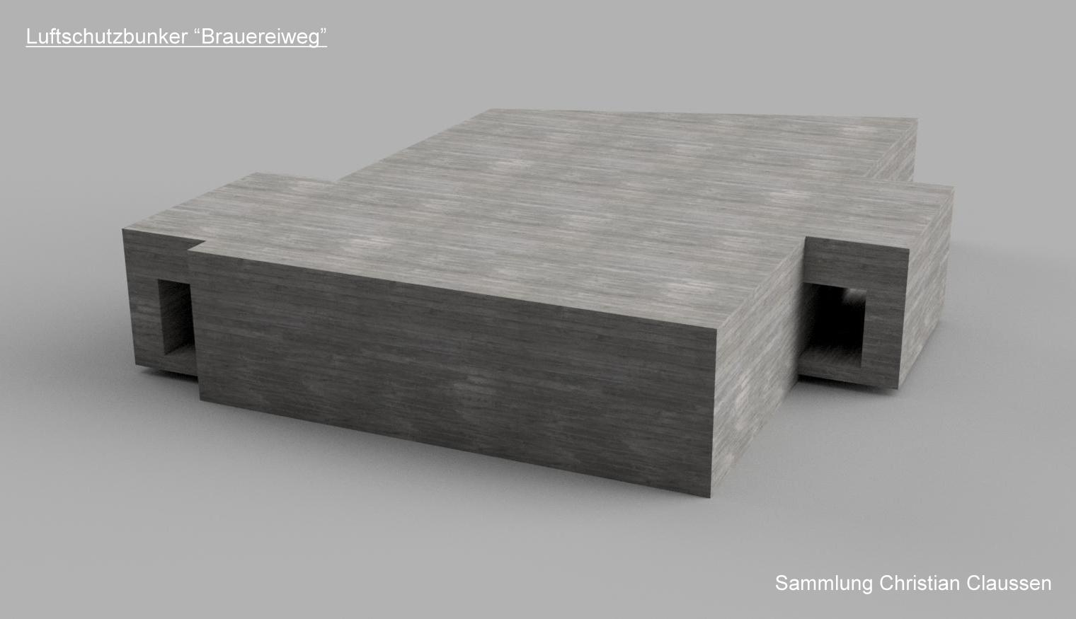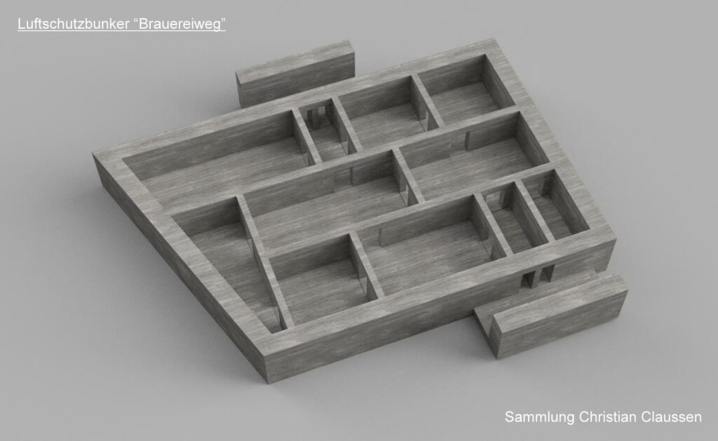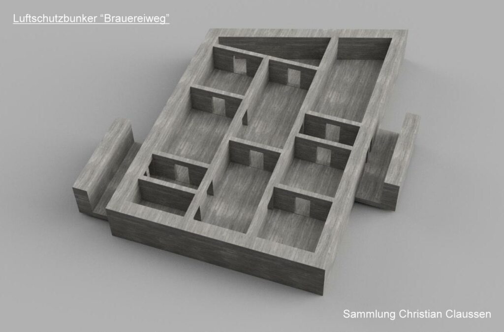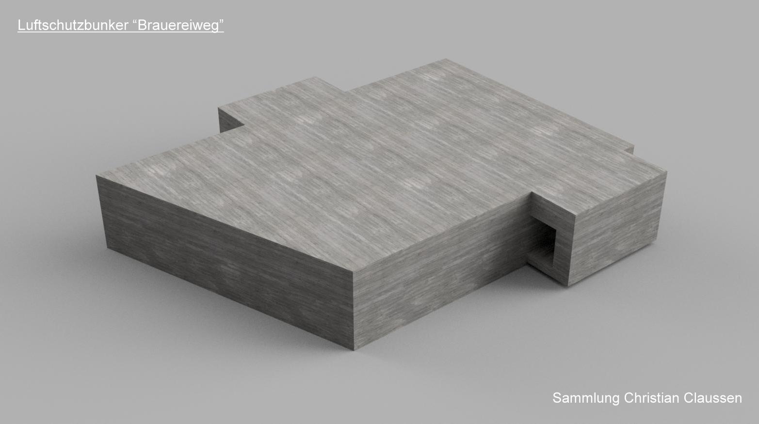 Das 3D-Modell zeigt den Bunker so wie er auf den Bauplänen erscheint.