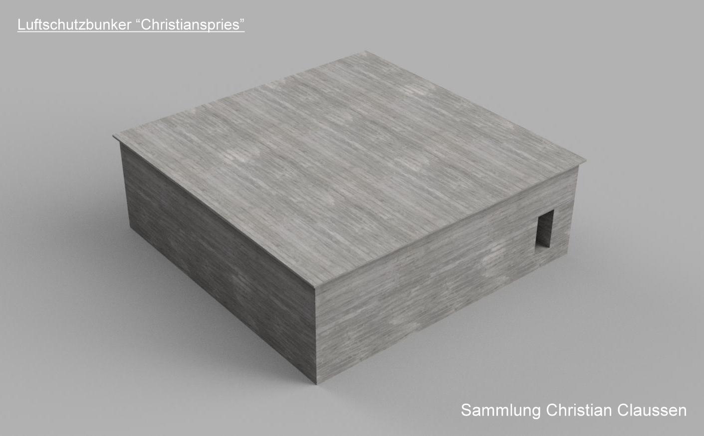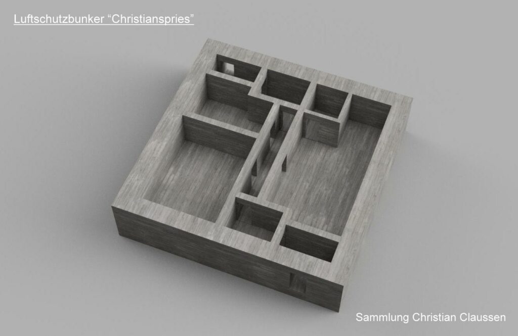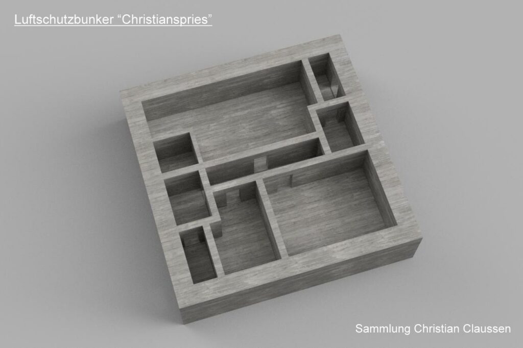 Das 3D-Modell zeigt den Bunker so wie er auf den Bauplänen erscheint.