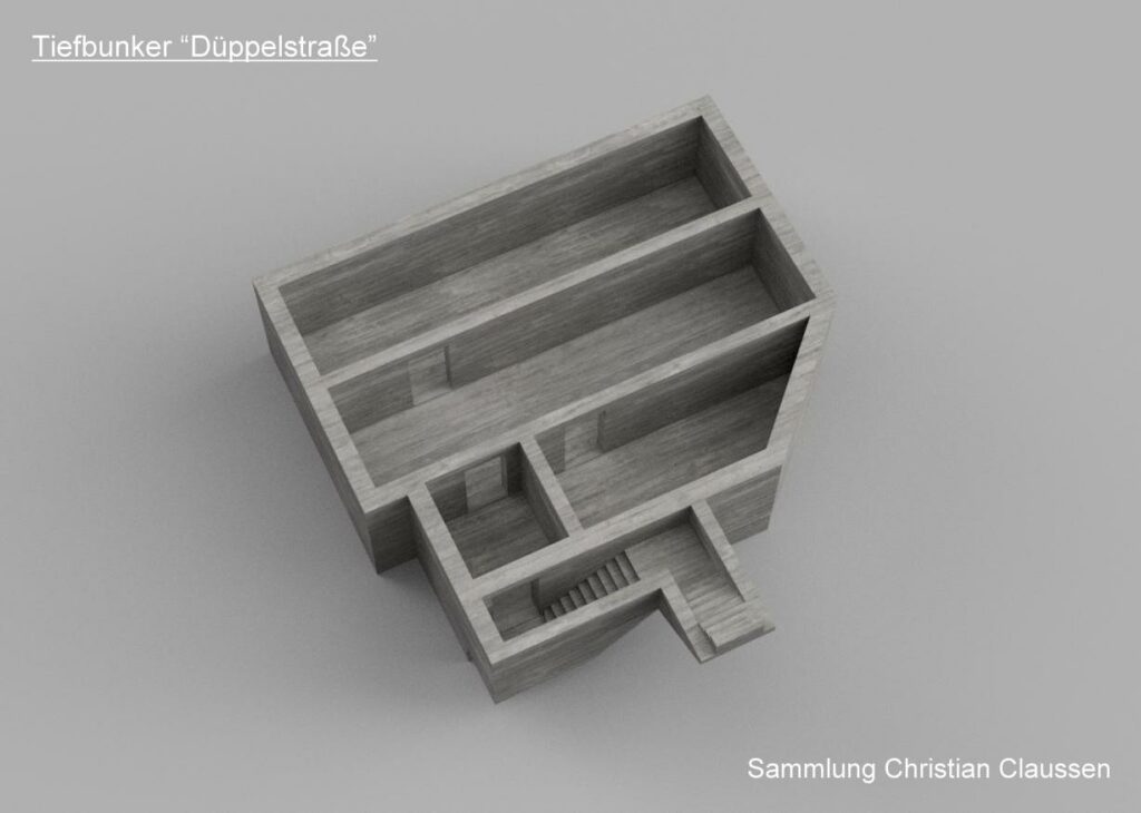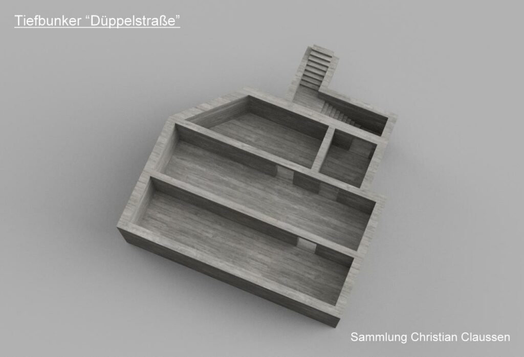 Das 3D-Modell zeigt den Bunker so wie er auf den Bauplänen erscheint.