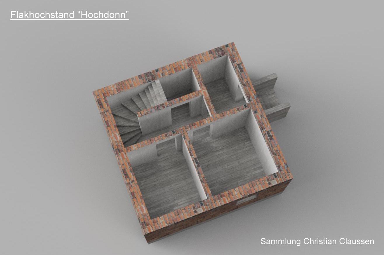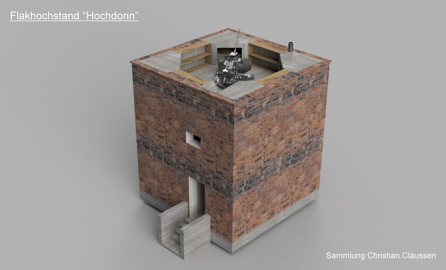 Der Flakhochstand befand sich ca. 100m östlich vom Scheinwerferstand 33 „Hochdonn“ entfernt. Er diente in Kombination mit einem leichten Flakgeschütz dem Schutz gegen Tiefflieger.