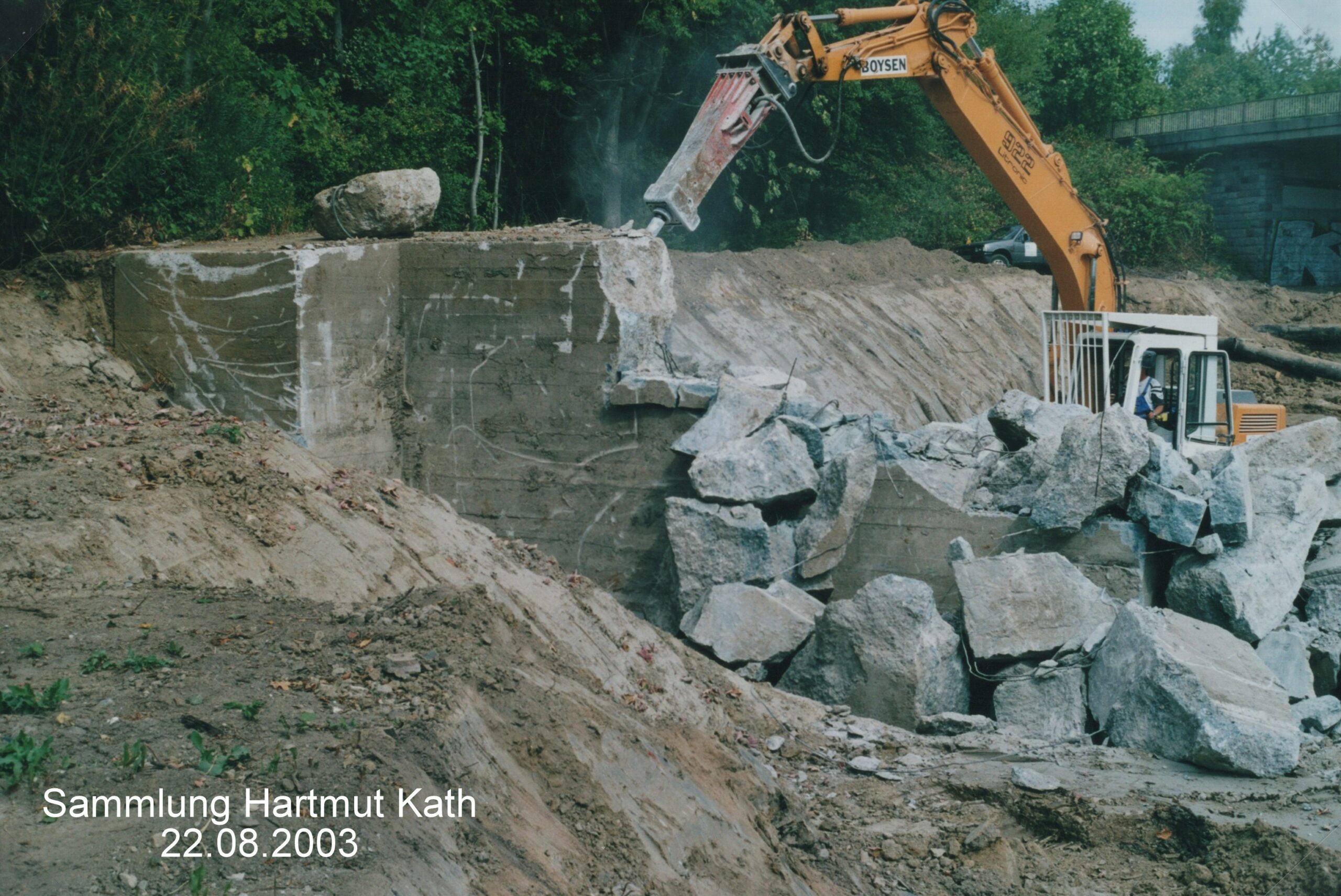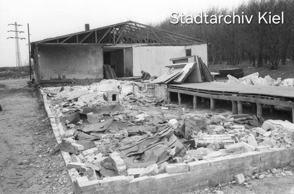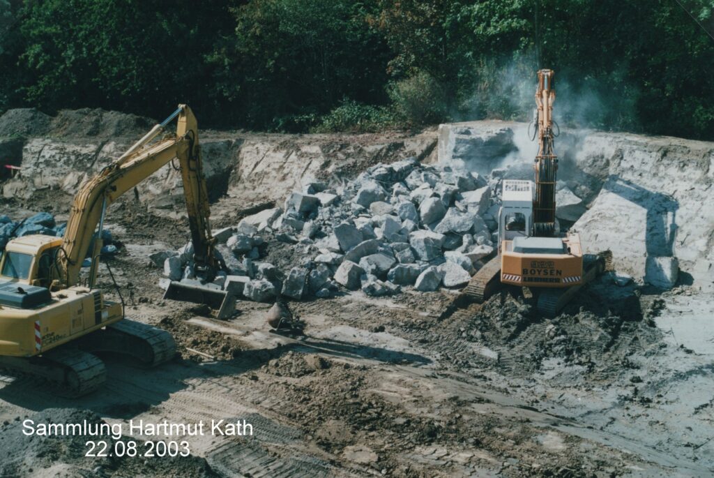 Das untere Foto zeigt die Beseitigung des Luftschutzunterstandes.