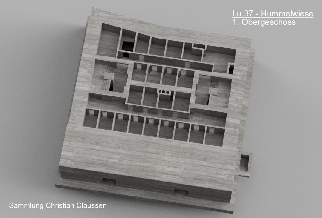 Das 3D-Model zeigt den Bunker nach den vorhandenen Bauplänen.