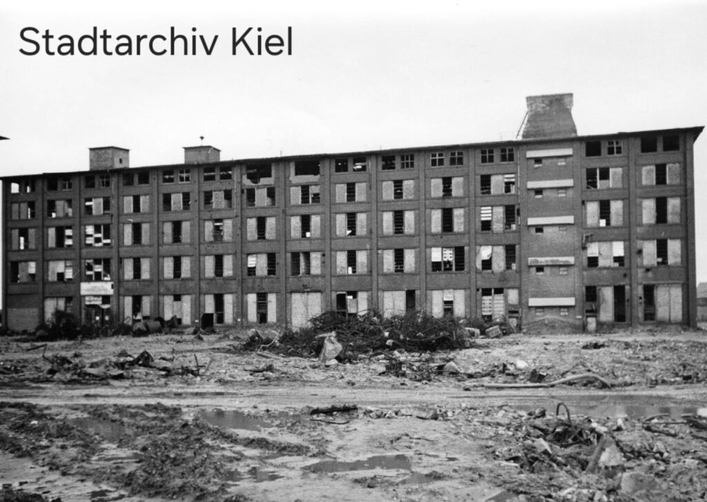Das folgende Foto zeigt die Werft nach dem Luftangriff am 9.4.1941. Im Hintergrund mittig Geäude 94 mit Flakstand.