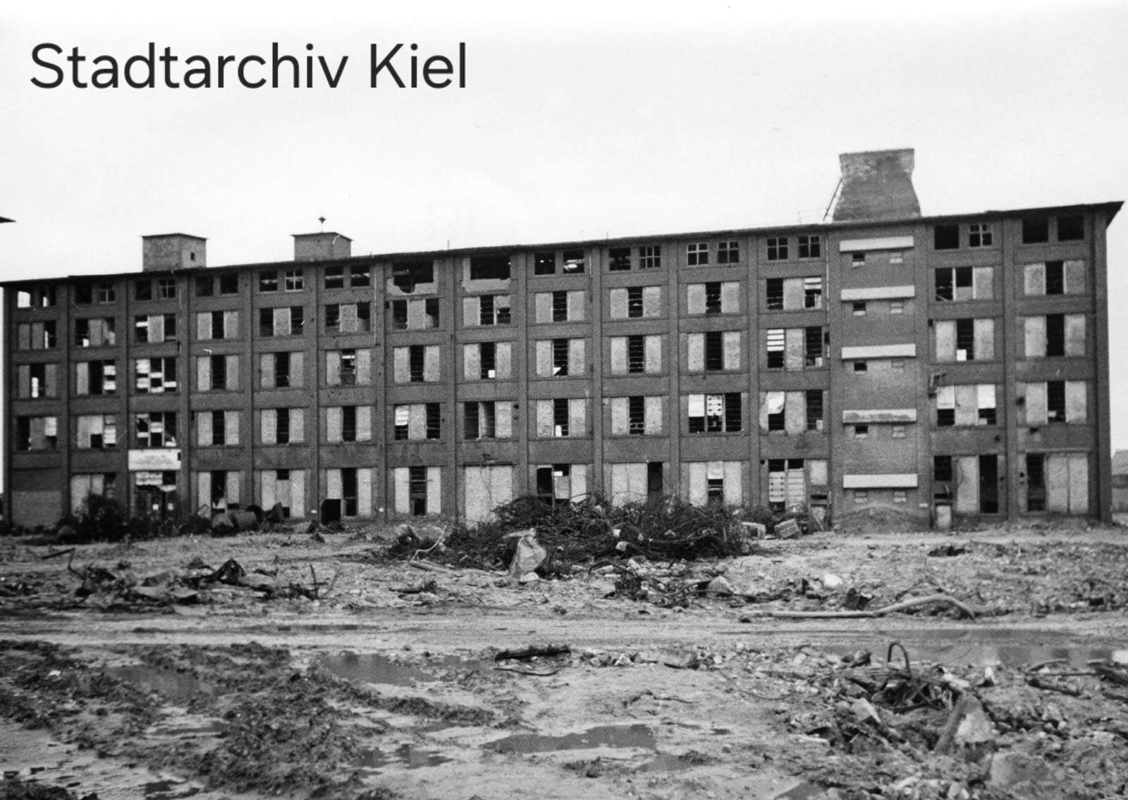 Das folgende Foto zeigt die Werft nach dem Luftangriff am 9.4.1941. Im Hintergrund mittig Geäude 94 mit Flakstand.