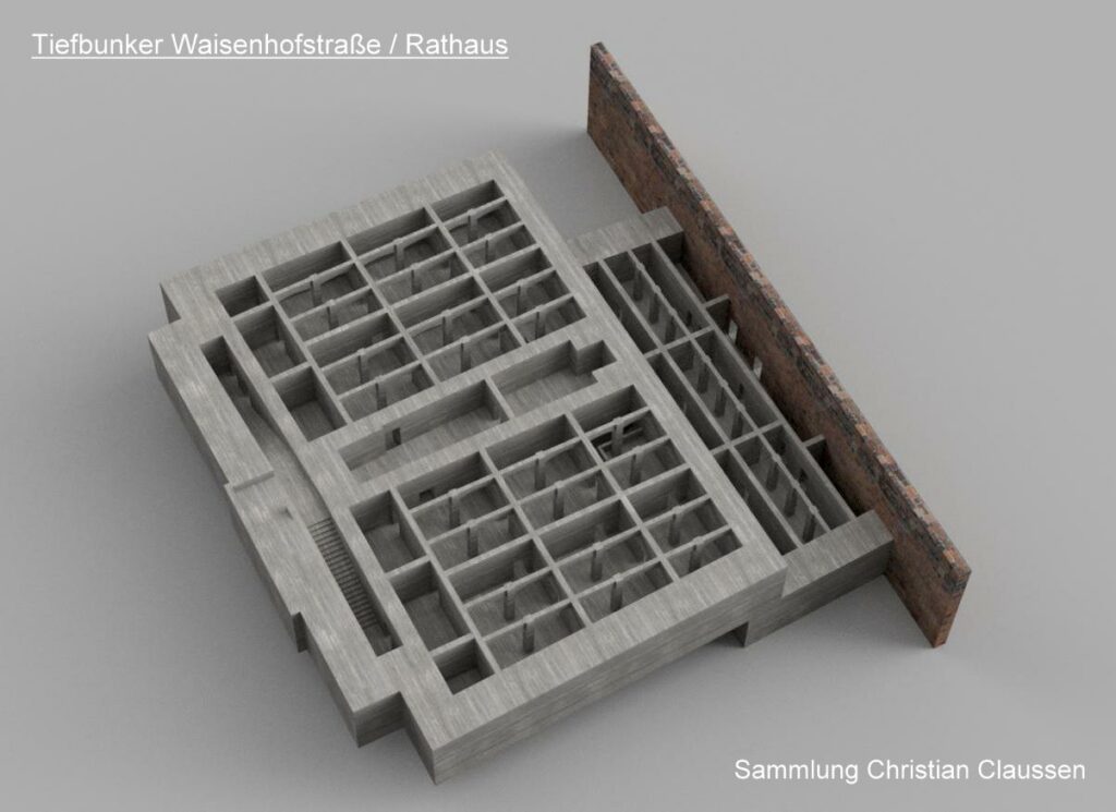 Das 3D-Modell zeigt den Bunker so wie er auf den Bauplänen erscheint.