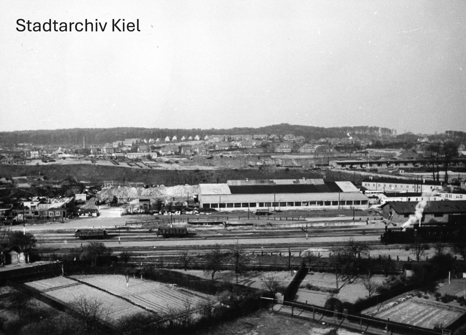 Das Foto unten zeigt den Blick vom Flakstand auf dem Speicher in Richtung Güterbahnhof am Tonberg im Juli 1942.